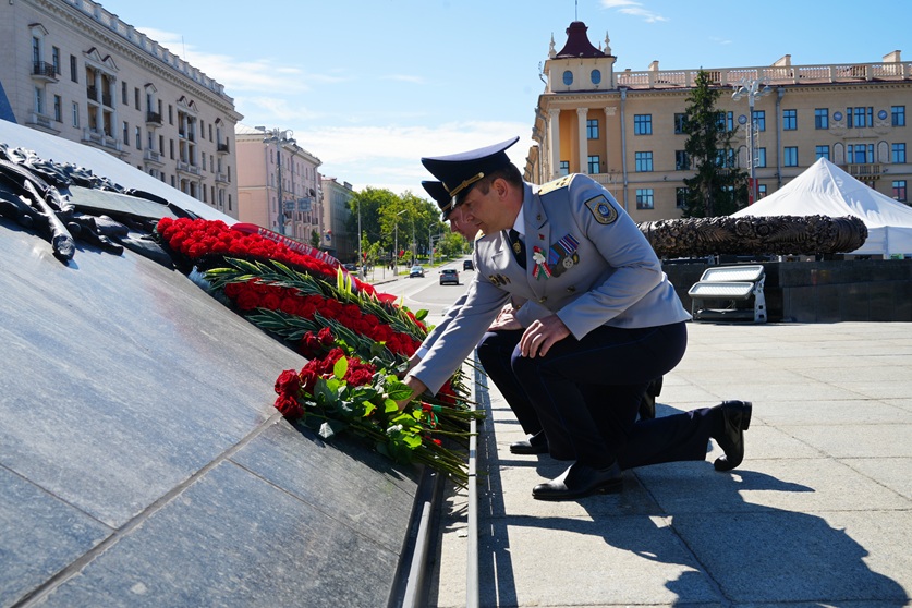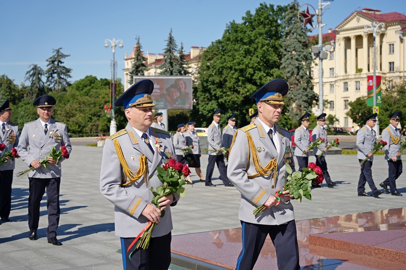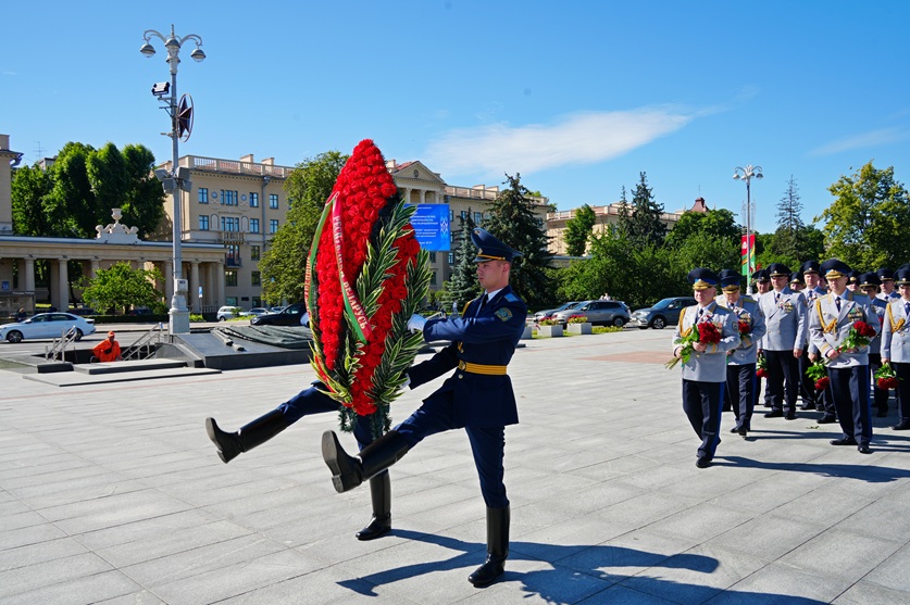 Торжественная часть началась с церемонии возложения цветов к подножью монумента Победы. Сотрудники ведомства во главе с Председателем Следственного комитета Дмитрием Горой выразили глубокую признательности и уважение к тем, кто отстоял свободу и независимость нашей Родины. Этот день еще раз напомнил о высокой ответственности каждого сотрудника правоохранительных органов перед историей и будущим страны.