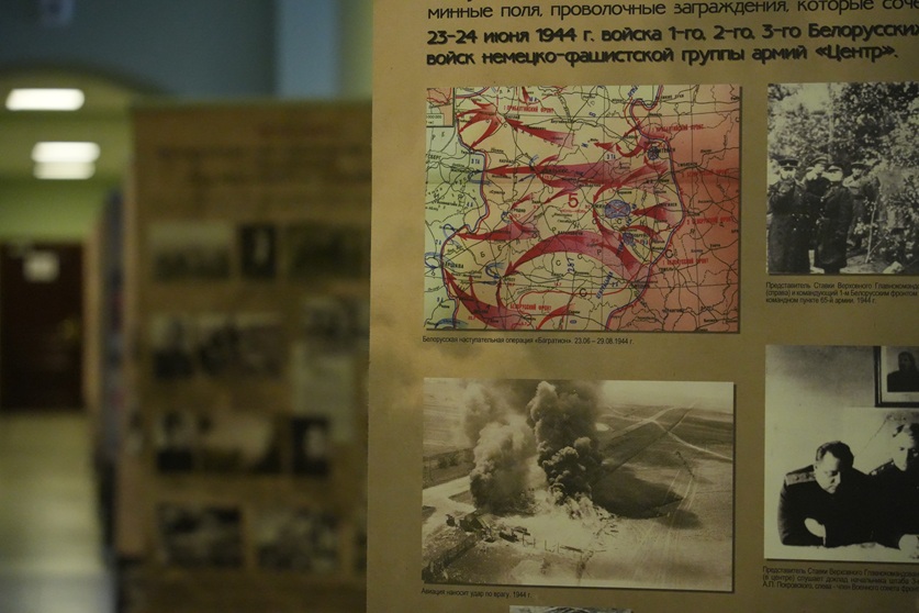 Для сотрудников Следственного комитета на территории центрального аппарата начала свою работу фотовыставка, организованная музеем истории Великой Отечественной войны. Экспозиция включает в себя уникальные архивные фотографии, запечатлевшие ключевые моменты наступательных операций, сыгравших решающую роль в изгнании немецко-фашистских захватчиков с белорусской земли. Особое внимание уделено героизму советских солдат и офицеров, а также подвигу белорусского народа.