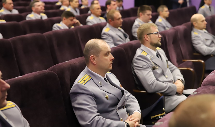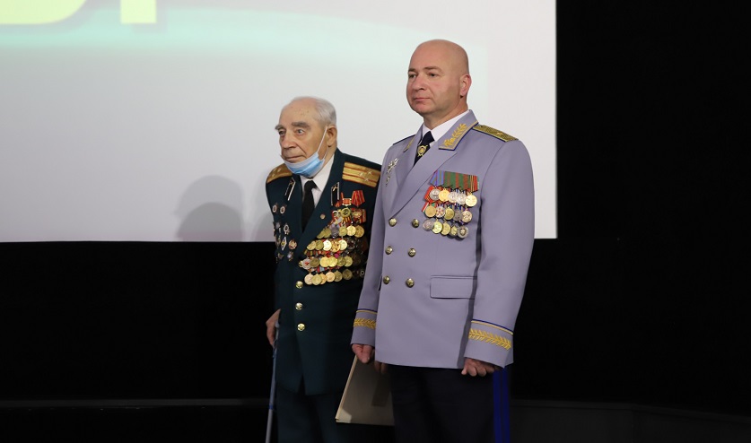 Председатель Следственного комитета Дмитрий Гора представил уважаемого ветерана гостям, выступил с приветственным обращением и поздравил присутствующих с наступающими праздниками – Днем Победы и Днем Государственного герба и Государственного флага.