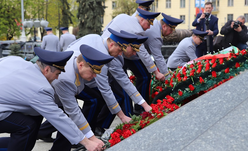 С самого утра 7 мая руководство и сотрудники Следственного комитета почтили память погибших в годы Великой Отечественной войны у монумента Победы в Минске. Представители ведомства провели традиционную торжественную церемонию возложения венков и цветов к обелиску, тем самым отдав дань памяти павшим героям войны.