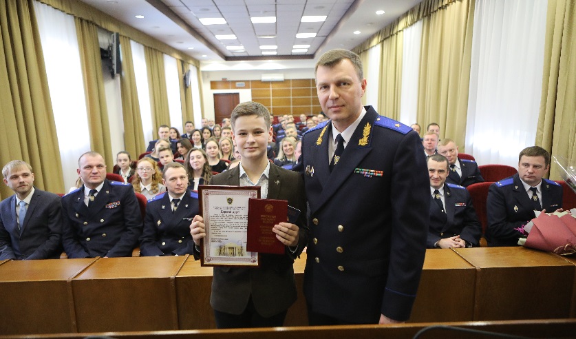 Торжественное собрание продолжилось церемонией награждения победителей и призеров республиканского конкурса научных работ на призы Председателя Следственного комитета. Участниками конкурса, проведенного впервые, стали студенты и курсанты высших учебных заведений, которые смогли раскрыть и реализовать свой научный потенциал.