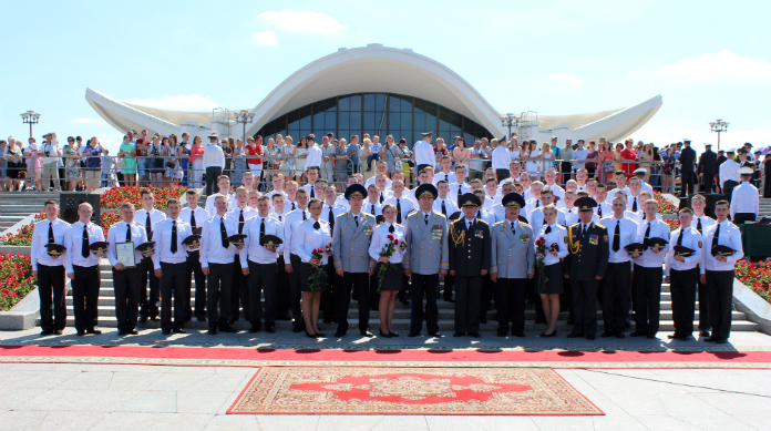 В продолжение церемонии лейтенанты прошли торжественным маршем, подбрасывая монеты в знак прощания с курсантской юностью. Завершилась официальная часть памятным фотографированием.