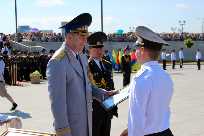 В праздничном мероприятии приняли участие представители всех силовых структур страны, ряды которых вскоре пополнят сегодняшние выпускники. Теплые слова и пожелания прозвучали в адрес бывших курсантов от их родителей, руководителей учебного заведения, представителей Белорусской православной церкви и ветеранов ОВД.