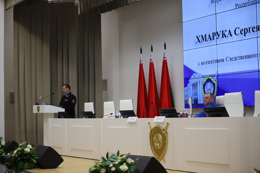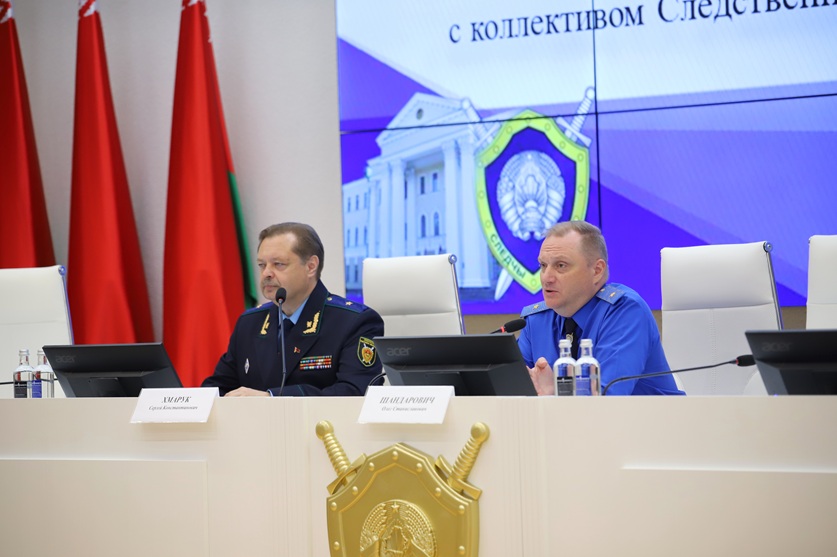 Заместитель Генерального прокурора Республики Беларусь Сергей Хмарук выступил перед руководящим составом и сотрудниками центрального аппарата Следственного комитета. В формате видеоконференции в мероприятии приняли участие представители управлений по областям и городу Минску.