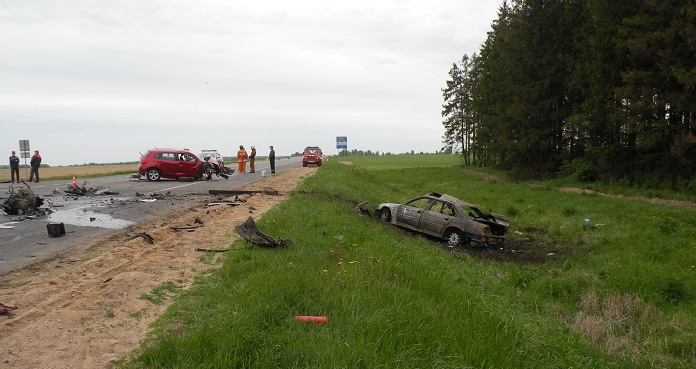 В результате дорожно-транспортного происшествия произошло возгорание автомобиля BMW 735. Находящиеся в машине пассажиры, 50 и 52-летний жители Могилевской области, скончались на месте.