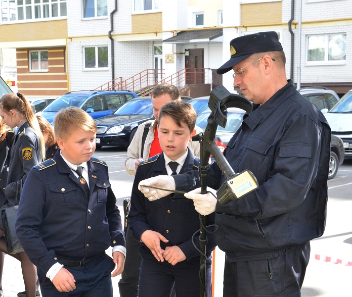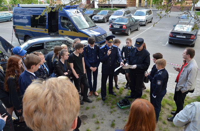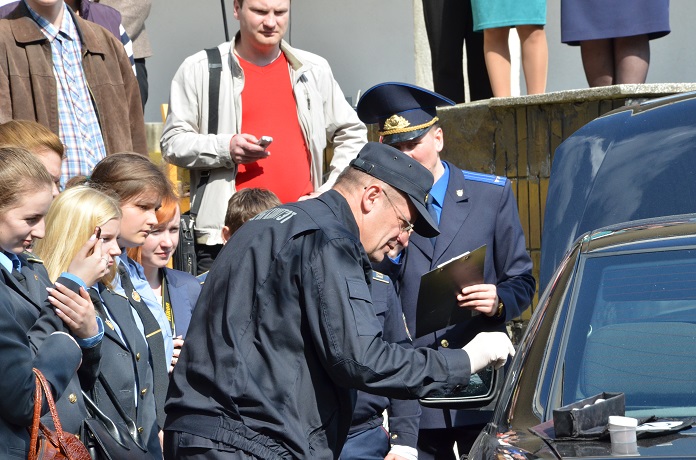 В завершении мероприятия кадеты поучаствовали в расследовании инсценированной кражи из автомобиля. Они смогли понаблюдать за работой сотрудников на месте происшествия, в том числе за процессом изъятия следов пальцев рук, обуви, биологических образцов, микрочастиц и обнаружением «отмычки» с помощью металлоискателя.