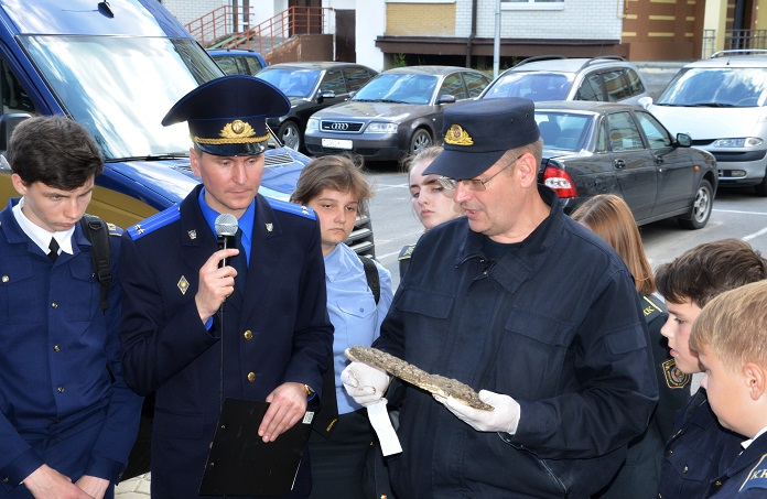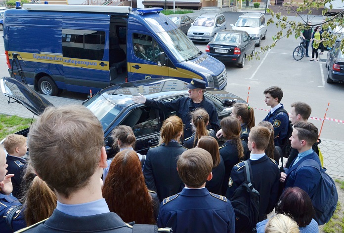 Следователь по особо важным делам криминалистического отдела областного аппарата Мариневич Виктор Степанович привел примеры раскрытия преступлений по следам, оставшимся на месте происшествия. Во время встречи он продемонстрировал учащимся содержимое специальных чемоданов, которыми оснащена передвижная криминалистическая лаборатория.