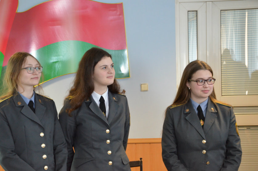 Далее перед учащимися выступили следователи Брестского МОСК Юлия Бобилевич и Артем Хилькович, которые до поступления на службу окончили указанный вуз. Они рассказали участникам мероприятия о порядке поступления в учебное заведение и особенностях обучения в нем.