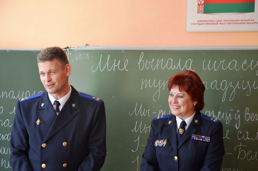 Во взводе, образованном на базе 8-ого класса, будут проходить обучение 23 учащихся. В настоящее время они являются воспитанниками, а в октября на торжественной церемонии будут посвящены в кадеты. Поздравить потенциальных следователей прибыли начальник управления кадров и идеологической работы УСК по Брестской области Алексей Борисюк и начальник Барановичского МОСК Инна Семенюк. Руководители познакомились с будущими кадетами, дали напутствие на предстоящий учебный год, а также вручили каждому подарки от УСК по Брестской области.
