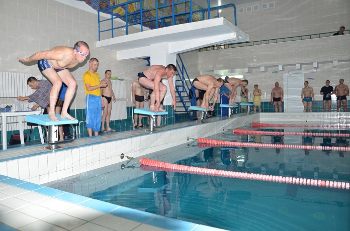 Далее состязания продолжились в бассейне, где мужчинам предстояло осуществить заплыв на дистанции в 100 метров, а сотрудникам старше 40 лет и женщинам - в 50 метров.