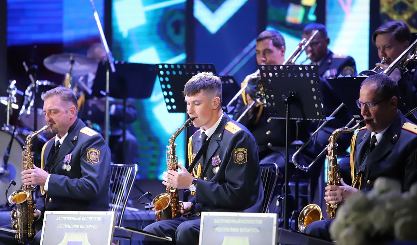 Торжественную часть продолжил праздничный концерт с участием заслуженного коллектива Республики Беларусь Духового оркестра ГУВД Мингорисполкома. Музыканты оркестра подарили праздничное настроение, зарядив присутствующих своей энергией.