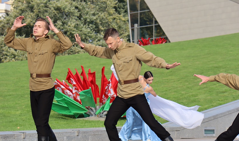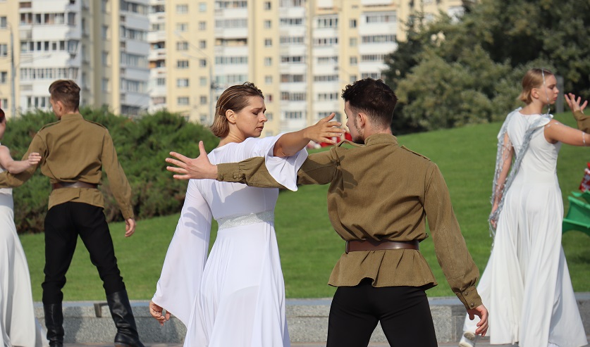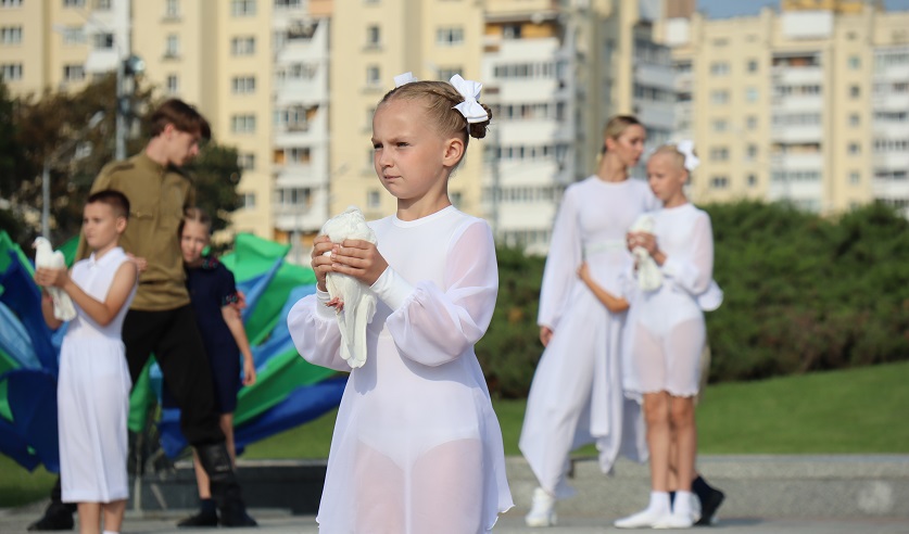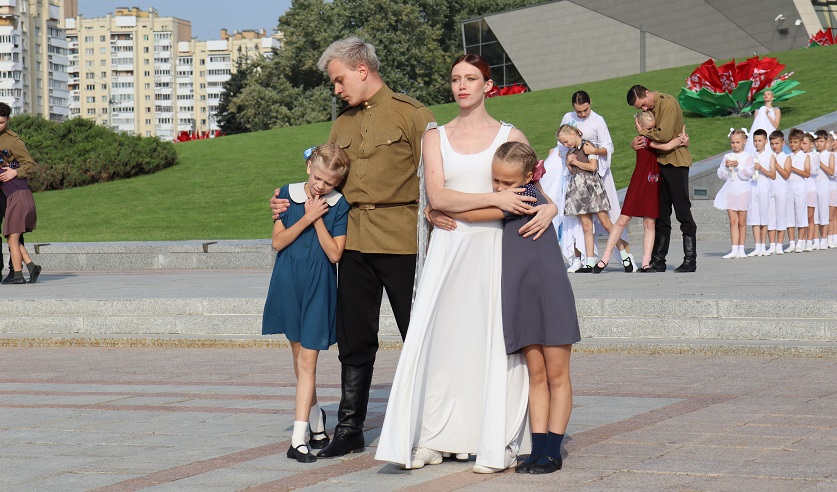 Торжественную церемонию открыло театрализованное представление, в котором артисты через хореографическую композицию показали, что пережили предки в те страшные годы и видели дети, смотря в глаза страху и ужасу, несущему смерть.