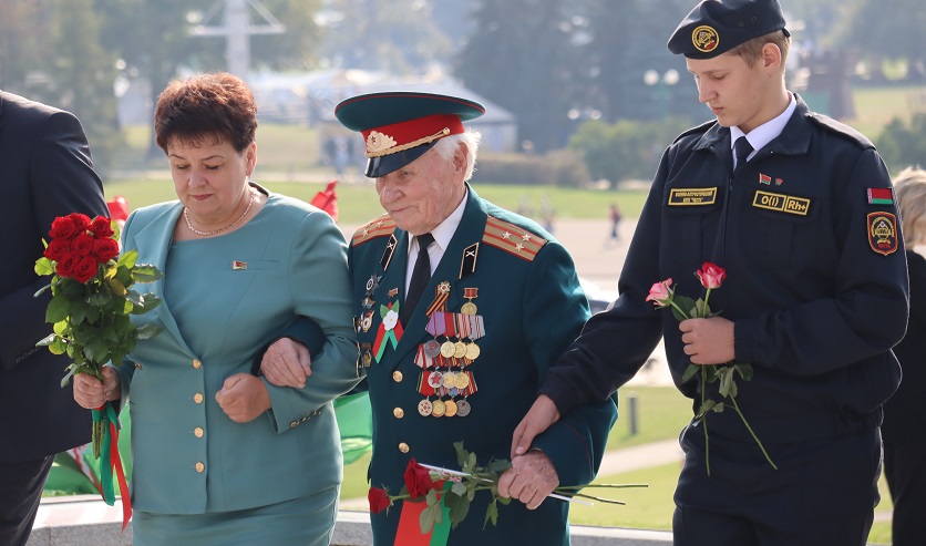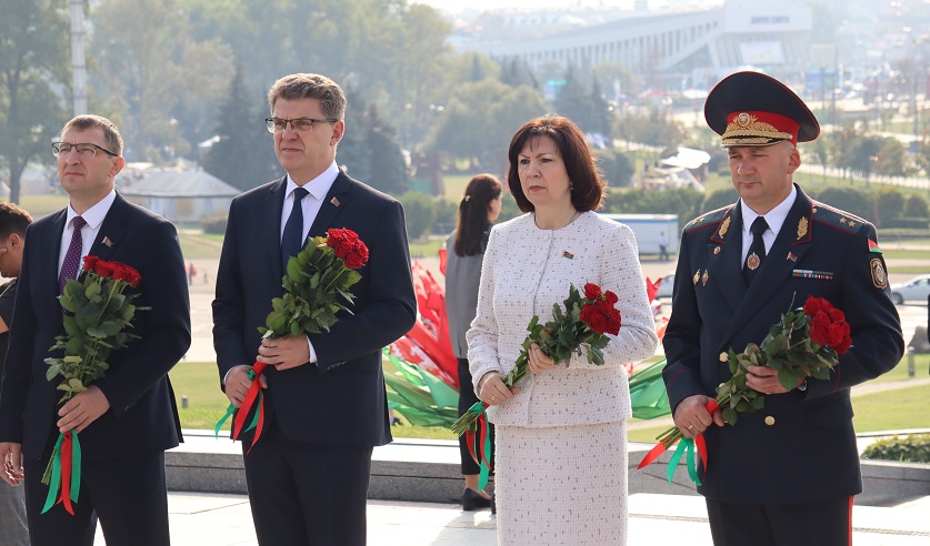 Председатель Совета Республики Наталья Кочанова, министр внутренних дел Иван Кубраков, председатель Мингорисполкома Владимир Кухарев, председатель Мингорсовета Артем Цуран, представители политических партий, общественных организаций и трудовых коллективов пришли к обелиску, чтобы почтить память предков минутой молчания за величайший подвиг, героизм и доблесть.
