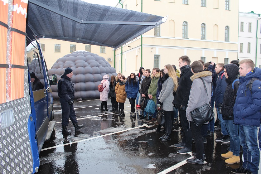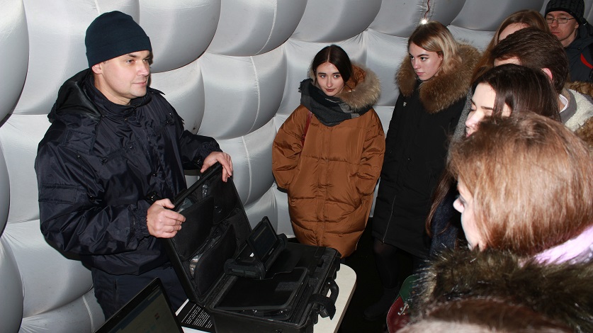 Далее состоялась ознакомительная экскурсия, в ходе которой студентам показали передвижную криминалистическую лабораторию, продемонстрировали вооружение, специальные средства и современное техническое оснащение.