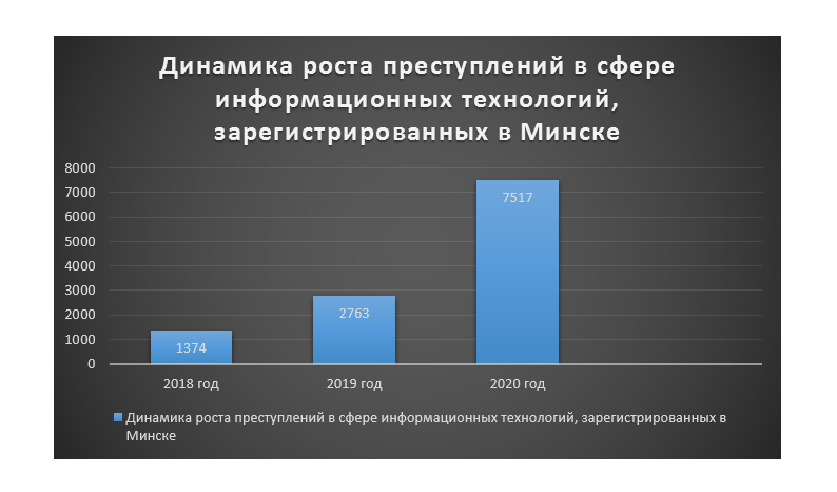 На протяжении всего прошлого года в Минске наблюдался рост количества преступлений в сфере информационных технологий. Подавляющее большинство из них составляют хищения денежных средств путем завладения реквизитами банковских карт – ст. 212 (хищение путем использования компьютерной техники, сопряженное с несанкционированным доступом к компьютерной информации) Уголовного кодекса Республики Беларусь.