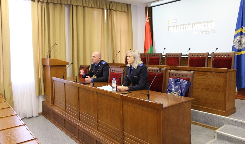 В приветственном слове заместитель начальника УСК по городу Минску Денис Шаман рассказал об этапах отбора кандидатов, медкомиссии, служебной проверке, а также о социальной обеспеченности сотрудников и материальной базе ведомства. Акцентировалось внимание на морально-деловых качествах следователей и преимуществах, которые дает получение высшего образования на следственно-экспертном факультете Академии МВД Республики Беларусь. После этого, вниманию учащихся был представлен фильм о Следственном комитете. Завершилось общение вопросами, которые задавали абитуриенты.