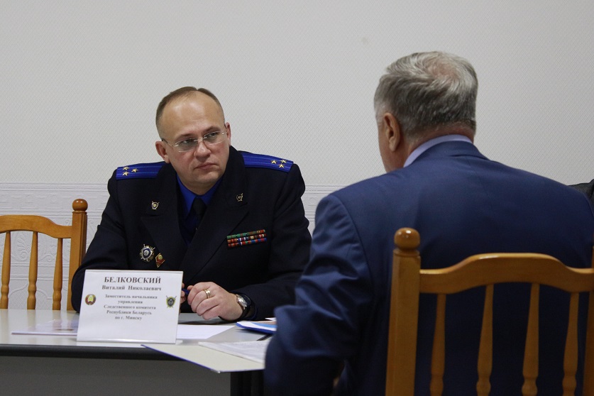 Очередная такая встреча проведена заместителем начальника УСК по г. Минску Виталием Белковским с работниками ОАО «Стройтрест № 1». В ходе беседы с коллективом он рассказал о целях и задачах Следственного комитета. В завершении общения присутствующие поинтересовались для своих детей требованиями к поступлению на следственно-экспертный факультет Академии МВД Республики Беларусь и порядком дальнейшего прохождения службы в ведомстве.