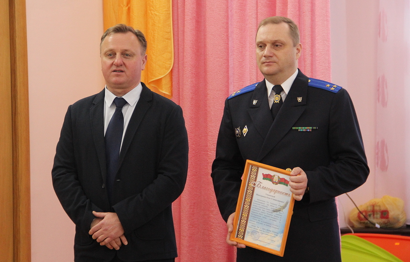 Вручая начальнику управления благодарственное письмо, Олег Стребков дополнительно подчеркнул неоценимую помощь следователей в создании первой в области специализированной палаты паллиативной помощи детям на базе Гродненского специализированного Дома ребенка. Сотрудники ведомства одними из первых поддержали акцию «Воздух жизни» по сбору средств на приобретение дорогостоящих современных портативных аппаратов искусственной вентиляции легких для оказания помощи детям с органическим поражением центральной нервной системы и нарушением психики. Кроме того, за собранные средства закупались предметы обстановки, средства реабилитации и многое иное для функционирования специализированной палаты, открытие которой торжественно состоялось в начале мая 2018 года. В результате сегодня нуждающиеся детки получают необходимую им помощь.