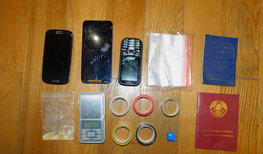 В ходе осмотра съёмной квартиры в Гродно, где проживает пара, изъяты предметы, используемые для расфасовки психотропных веществ, а также полимерный сверток с наркотиком. Установлено, что в мобильном телефоне молодого человека имеются фотоизображения с координатами закладок.