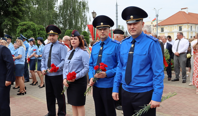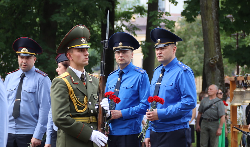 После чего днем в парке имени Жилибера состоялся митинг-реквием, в котором приняли участие руководители органов исполнительной власти и управления, правоохранительных и силовых ведомств, представители трудовых коллективов, общественности, горожане и гости Гродно. Управление Следственного комитета по Гродненской области представил заместитель начальника Олег Новик и начальник управления тылового обеспечения Валерий Виницкий.
