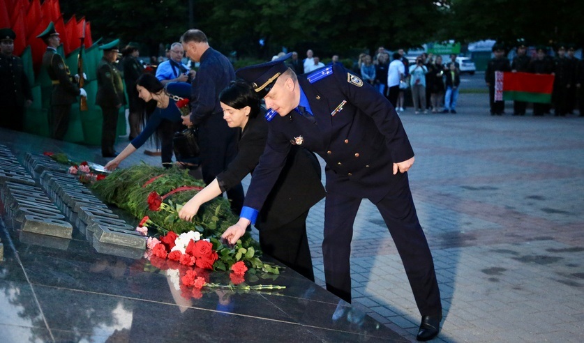 В этот день сотрудники Гродненского межрайонного отдела Следственного комитета вместе с начальником отдела Алексеем Кашлеем в 4 утра приняли участие в митинге, который прошел у памятника советским воинам-пограничникам. Данное место выбрано не случайно, ведь именно защитники границы первыми приняли на себя удар гитлеровцев.