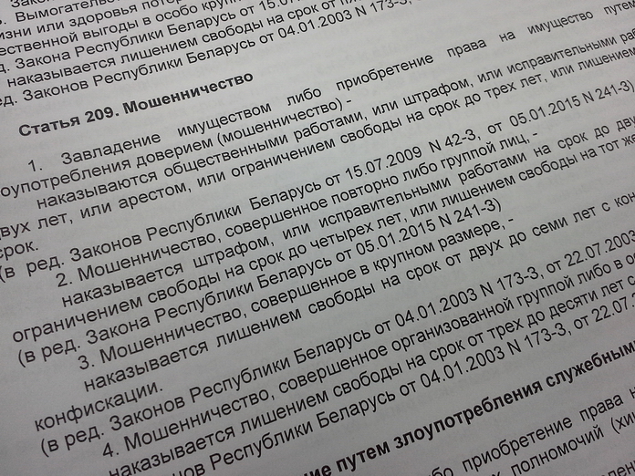 Гродненским межрайонным отделом Следственного комитета расследуется уголовное дело, возбужденное по факту завладения имуществом субъектов хозяйствования в особо крупном размере (ч.4 ст.209 Уголовного кодекса Республики Беларусь).