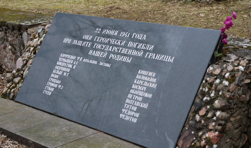 После чего отправились к месту, где в первые часы войны велись ожесточенные бои. Мемориальный комплекс «Застава имени Феодосия Кириченко» расположен вблизи деревни Доргуни Гродненского района. Сразу после нападения Германией на Советский Союз начальник заставы Кириченко поднял ее «в ружье». Жены и дети пограничников были отправлены в ближайшую деревню, а сами бойцы принялись отражать атаку врага, явно превосходившего их по численности и укомплектованности. Несмотря на это пограничники сражались до последнего, более 10 часов они держали оборону. Смертью храбрых пали все.