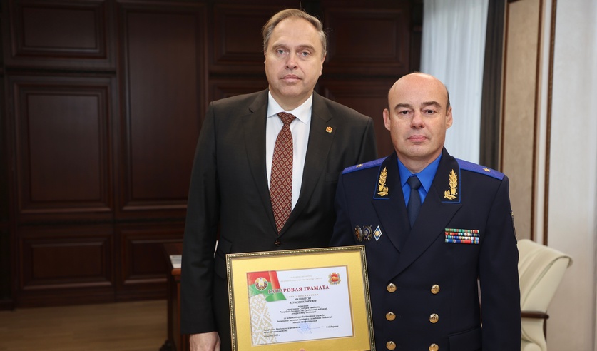 Глава Гродненского региона за многолетнюю безупречную службу, достижение значимых результатов в служебной деятельности и высокий профессионализм вручил Эдуарду Малиновскому Почетную грамоту.