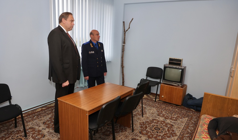 Председатель облисполкома посетил малый зал для совещаний и актовый зал, ознакомился с работой оперативно-дежурной службы. Также губернатору был продемонстрирован криминалистический полигон, оборудованный для занятий молодых следователей.