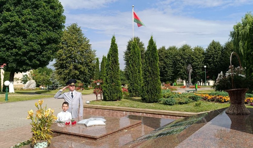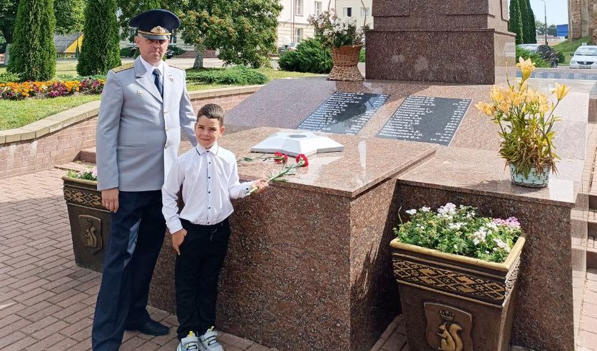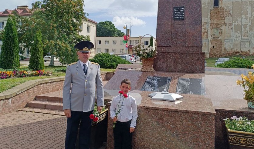 У Мемориала Славы, расположенного на Ратушной площади в центре городского поселка Большая Берестовица, встречаемся со старшим следователем Берестовицкого районного отдела Следственного комитета Николаем Чепко и его сыном Степаном. Мемориал состоит из братской могилы, где захоронены 192 воина и партизана, погибшие в годы Великой Отечественной войны, памятника воину-освободителю и Стены Памяти.