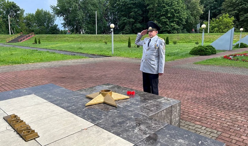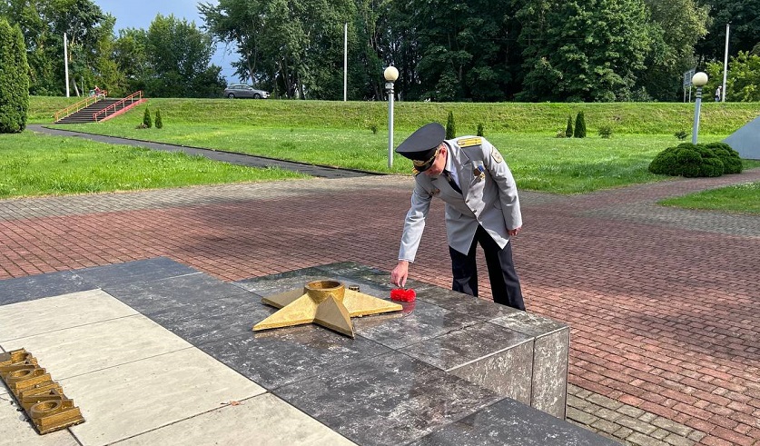 У Обелиска славы нас встречает заместитель начальника Дятловского районного отдела Следственного комитета Дмитрий Лупач.