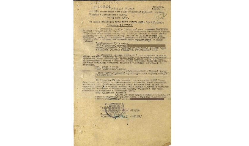 «При выходе дивизии из окружения на территории Смоленской области в феврале 1942 года пропал без вести. Вторично призван в армию после освобождения районов Беларуси в июле 1944 года из 277-го партизанского полка, действовавшего во время оккупации на территории Минской и Могилевской областей. Но особо Василий Петрович отличился в ходе Белостокской наступательной операции в бою за наш районный центр – Мосты», - продолжает свой рассказ следователь Максим Шит.