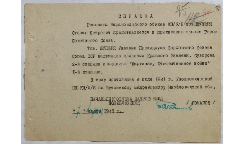 Следователь рассказал, что родился Степан Петрович в 1896 году в деревне Нача Минской области. Участник гражданской войны, после служил в железнодорожных войсках, восстанавливал народное хозяйство. В 1926 году вступил в ряды КПСС, работал в Борисовском райкоме партии. С 1935 года на партийной работе. Перед Великой Отечественной войной — секретарь Щучинского райкома партии. На эту территорию в тыл врага его и направили в 1943-м году.