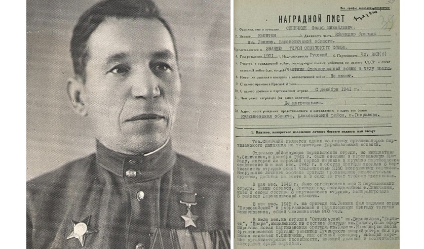 «В ожесточенных оборонительных боях дивизия была практически полностью уничтожена, а капитан Федор Синичкин был ранен в ногу и контужен. Вынужденно оставшись на оккупированной территории, в августе 1941 года он организовал партизанскую группу в Налибокской пуще, началась планомерная партизанская война. Отряд Синичкина рос, ему по силам стали фашистские гарнизоны и охраняемые военные объекты, усиленные автоколонны, перевозившие живую силу и грузы. В марте 1942 г. вместе со своей группой вошёл в состав Сталинского отряда. К осени 1942 года отряд значительно вырос, имея на своем боевом счету десятки боевых операций», - делится фактами из биографии партизана Анна Александровна.