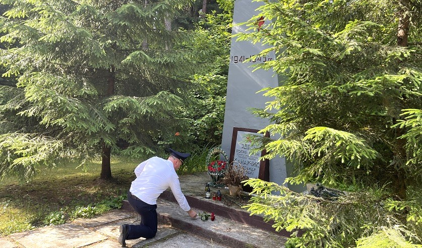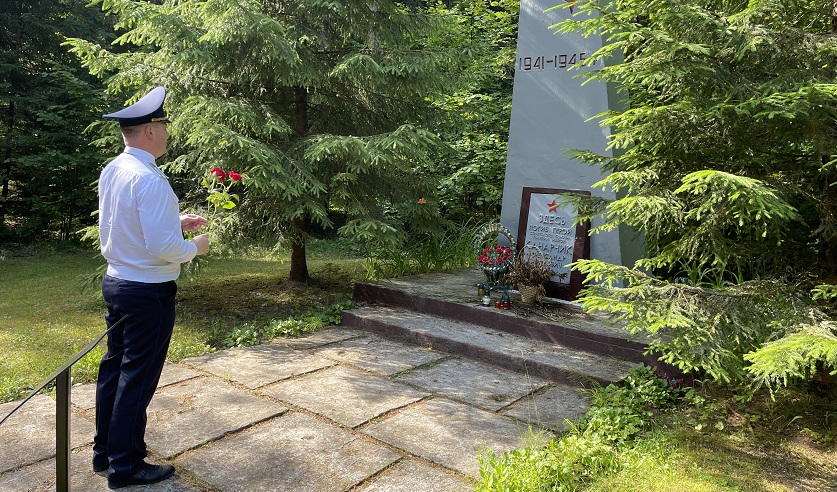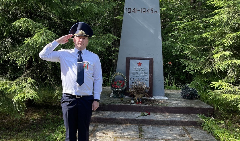 У памятника вблизи деревни Барташуны встречаемся с начальником Вороновского районного отдела Следственного комитета Алексеем Титовым.