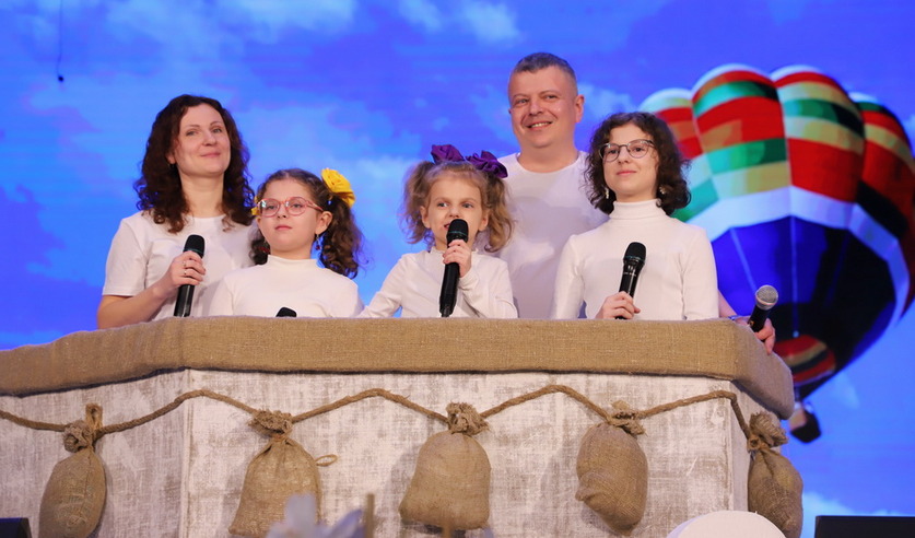 После чего жюри и гостей конкурса ждал самый зрелищный этап «Визитная карточка «Мой родовод», где, путешествуя на воздушном шаре, участники рассказали о том, что в жизни каждой семьи бывают взлеты и падения, и только настоящая любовь, поддержка, вера друг в друга способны творить чудеса и поднимать шар к звездам.