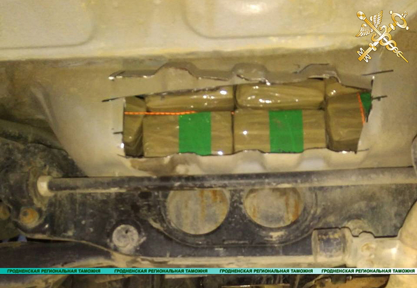 Днем 1 октября 2017 года у следовавшего в автомобиле «Lexus RX270» из Республики Польша через пункт таможенного оформления «Брузги-2» Гродненской региональной таможни по «зеленому коридору» 56-летнего гражданина Российской Федерации в ходе таможенного контроля с использованием инспекционно-досмотрового комплекса и кинологической службы в специально изготовленных тайниках транспортного средства были обнаружены 372 брикета с веществом растительного происхождения общей массой около 300 кг.