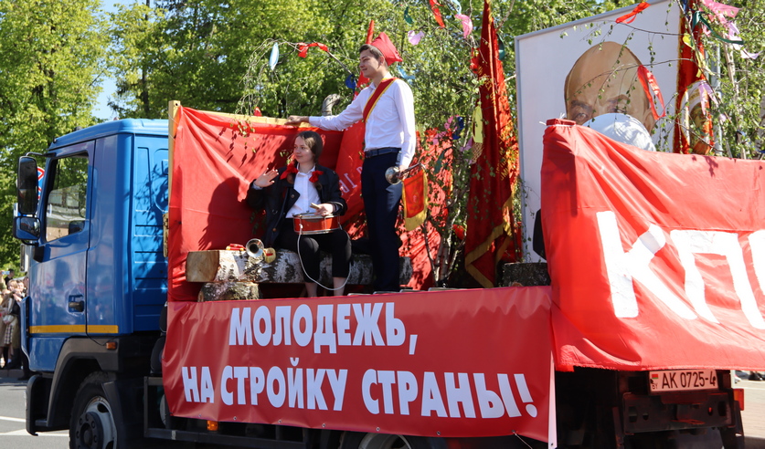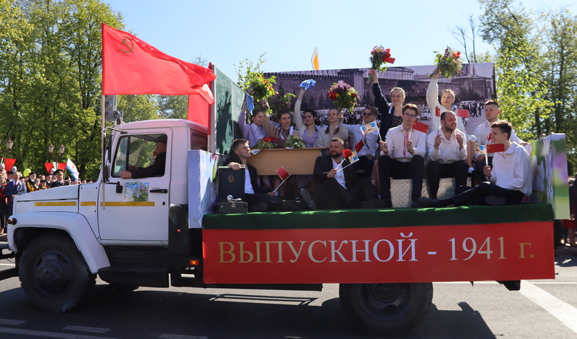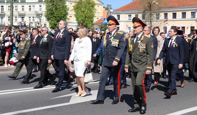 После чего все желающие приняли участие в шествии поколений «Нам этот мир завещано беречь!». От парка Жилибера праздничные колонны устремились к площади Советской, где состоялся торжественный митинг.