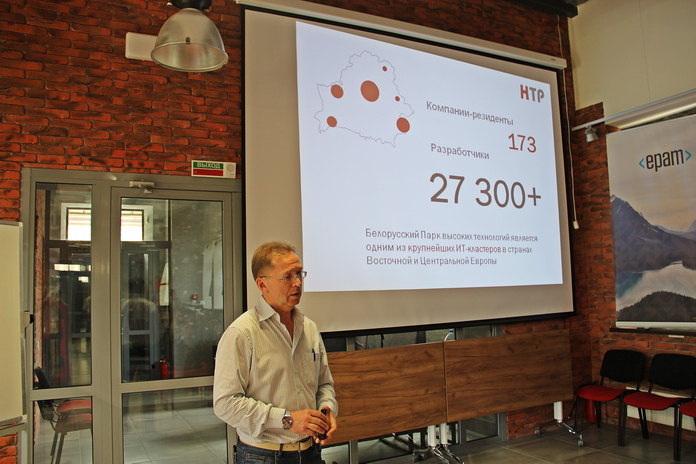 Затем в зале коворкинга для собравшихся была проведена обзорная лекция о современных возможностях регионального отдела Парка, который оказывает содействие созданию и развитию ориентированных на экспорт производств в сфере информационно-коммуникационных технологий (ИКТ) в Гродненской области, продвижение разработок и услуг ПВТ в регионе, формирует благоприятные условий для развития в регионе инновационного предпринимательства в сфере ИКТ, осуществляет меры по поддержке субъектов малого предпринимательства, реализующих различные проекты в указанной сфере.