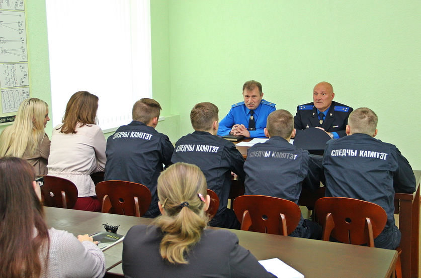 Затем круглый стол с молодыми сотрудниками провели начальник УСК по Гродненской области Иосиф Леонко и заместитель начальника отдела анализа практики методического обеспечения предварительного расследования Валерий Шилов, являющийся председателем областной ветеранской организации Следственного комитета. В формате дискуссий многоопытные профессионалы обсуждали с делающими первые шаги в профессии сотрудниками вопросы уголовного права и процесса, методики проведения отдельных следственных действий, психологически аспекты службы, перспективы внедрения передового опыта, в т.ч. и зарубежных стран.