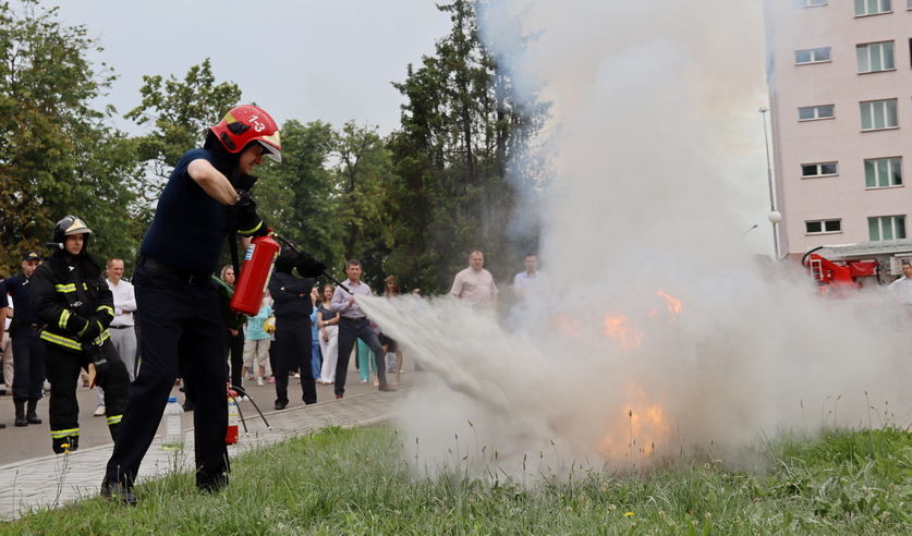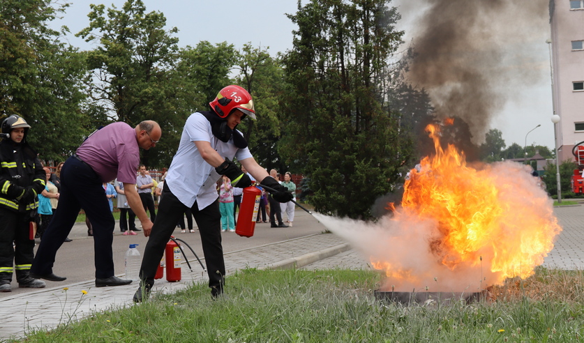 Затем всем присутствующим была доведена информация о необходимости соблюдения правил по обеспечению пожарной безопасности, поведения у воды, что особо актуально в летний период, а также алгоритм действий в случае возникновения чрезвычайных ситуаций. После чего сотрудники смогли попрактиковаться в локализации возгорания огнетушителем.