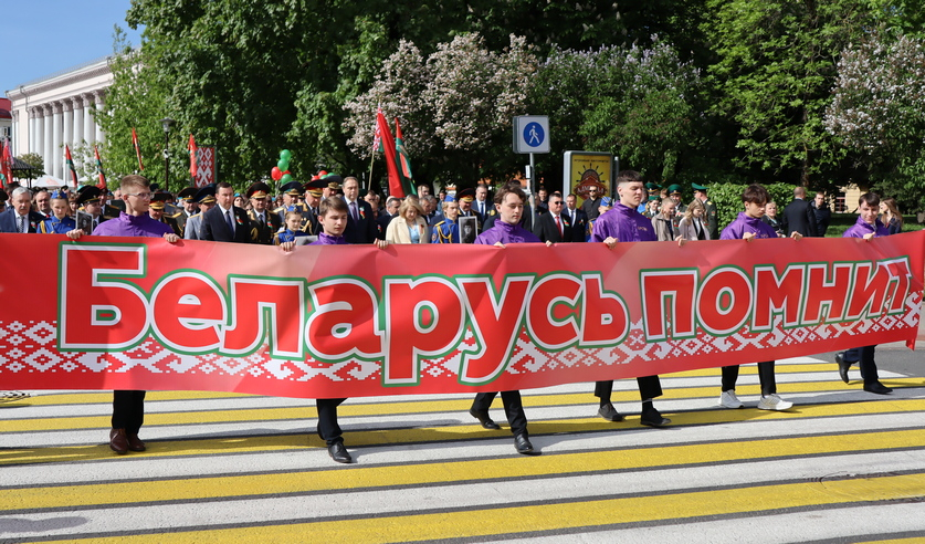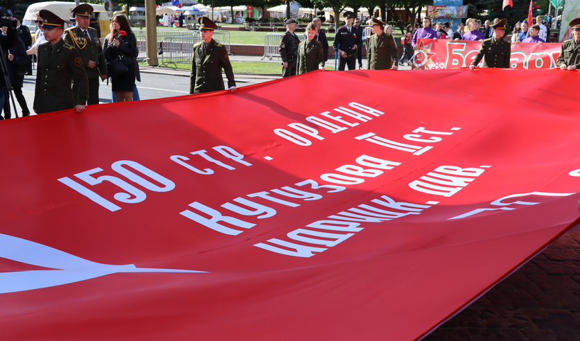 Праздничное шествие стартовало с площади Советской, далее участники прошли по одноименной улице, затем по улицам Ожешко и Дзержинского, финишной точкой маршрута стала площадь Ленина.