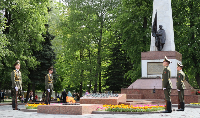 С площади Ленина все участники мероприятия выдвинулись в парк имени Жилибера, где состоялась торжественная церемония возложения цветов и венков к памятнику советским воинам и партизанам, погибшим в годы Великой Отечественной войны. После чего память ушедших защитников Родины, героически сражавшихся за ее свободу, участники церемонии почтили минутой молчания.