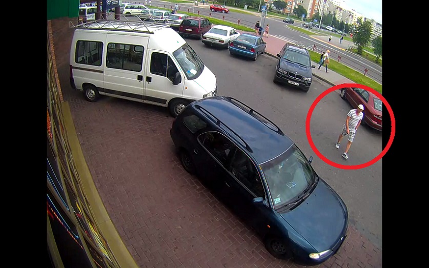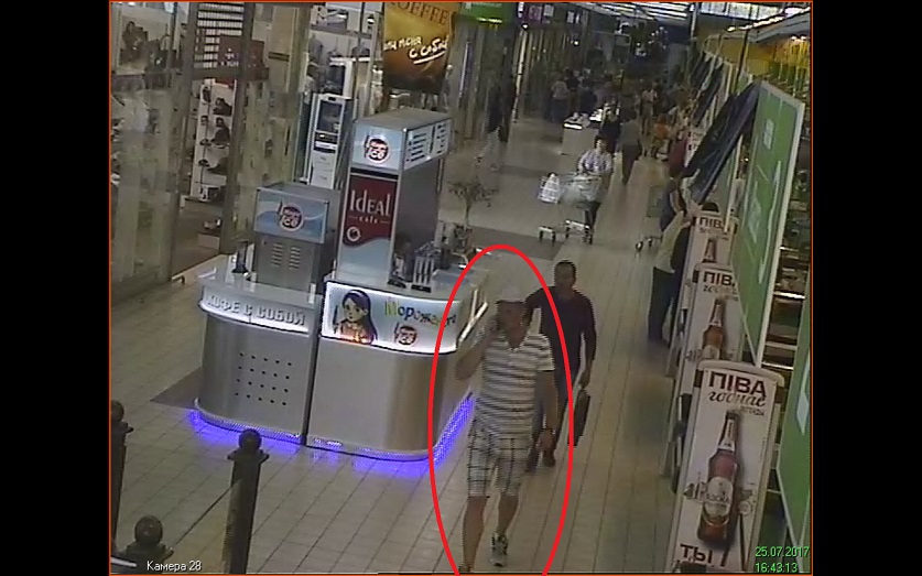 С учетом анализа всей полученной информации подозрения в совершении преступления пали на мужчину, чье изображение имеется на видеозаписи и сделанных с нее фотоснимках. Его приметы: на вид 30-35 лет, рост 175-180 см., волосы короткие, был одет в майку бело-серого цвета с горизонтальными полосками, шорты до колена белого цвета с рисунком в виде клетки серого цвета, белую кепку с коротким козырьком и той же расцветки кроссовки.