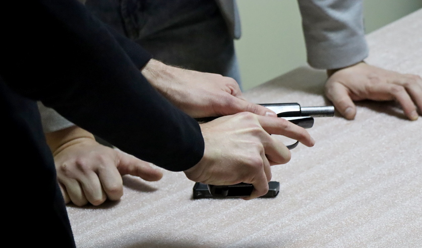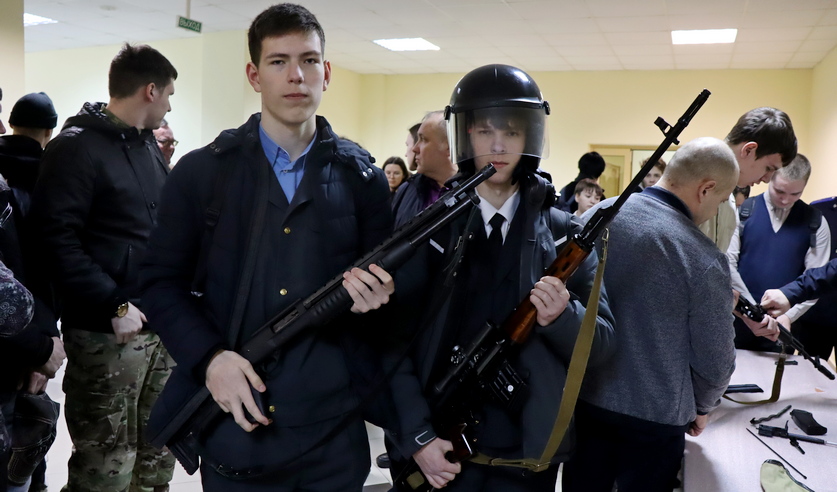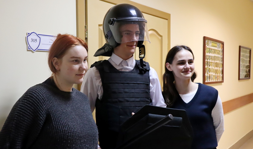 Начался «День открытых дверей» с демонстрации вооружения и специальных средств Следственного комитета. Студенты смогли подержать в руках оружие, примерять каски и бронежилеты, сделать памятные снимки.
