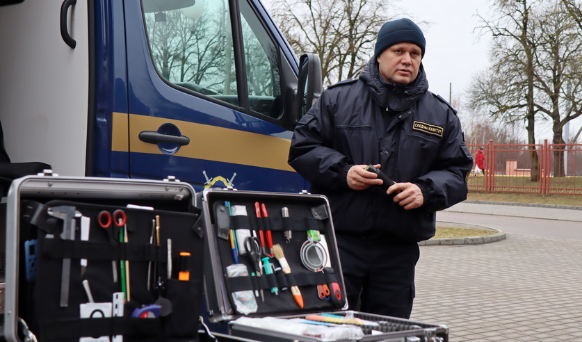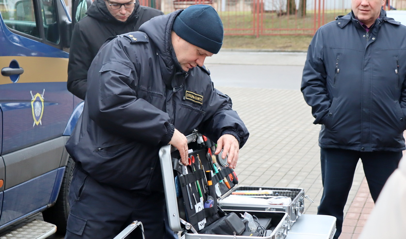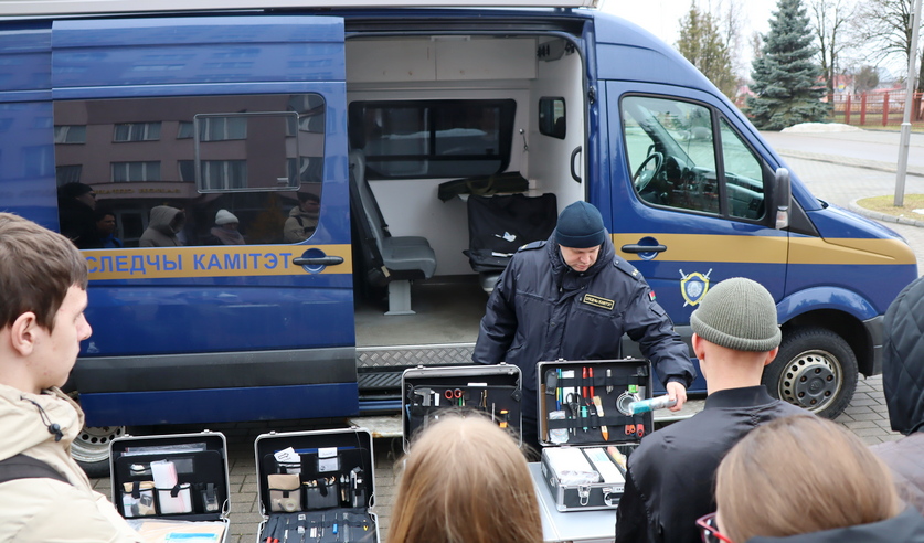 После чего студенты смогли познакомиться с возможностями передвижной криминалистической лаборатории. Следователь по особо важным делам криминалистического отдела УСК Иван Поповский продемонстрировал средства, которые ежедневно используют следователи при выбытии на места происшествий, привел конкретные примеры уголовных дел, в том числе о преступлениях прошлых лет, раскрытых спустя десятки лет после их совершения.