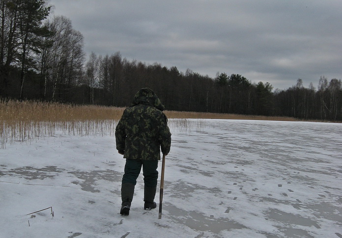 - не выходить на лед толщиной менее 7 см, у зарослей камыша и тростника, в местах образования концентрических трещин со скрипящим звуком, на темный и/или ноздреватый лёд, а также покрытый толстым слоем снега, в местах выхода на лёд воды;