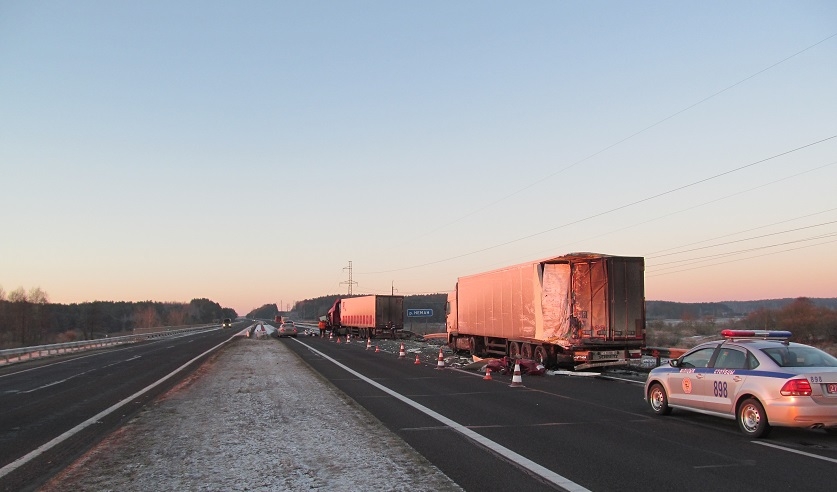 По данным следствия, ночью 30 ноября 2018 года 26-летний житель Минска управлял грузовым автомобилем SCANIA и двигался по автодороге М1 «Брест-Минск-граница Российской Федерации» в направлении Бреста со скоростью около 88 км/ч. Вблизи д. Перетоки Столбцовского района водитель, имея реальную возможность заблаговременно наблюдать складывающуюся впереди по ходу движения дорожную обстановку, допустил столкновение сначала со стоявшим на правой обочине и частично на его полосе движения автопоездом DAF, а затем - с эвакуатором IVECО.