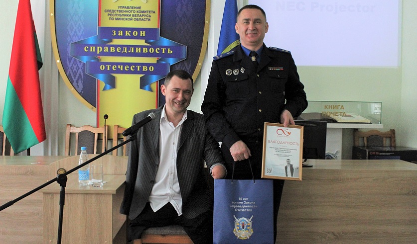 В завершение Алексей Талай вручил управлению Следственного комитета по Минской области Благодарность за добрые дела, любовь к Родине и верность традициям. Как справедливо подчеркнул заместитель начальника УСК Валерий Калин, благодаря гостя за встречу, «мудрейшая и душещипательная речь Алексея станет дальнейшим стимулом для роста и развития сотрудников».