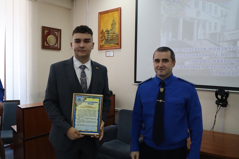 В ходе мероприятия из рук генерал-майора юстиции Сергея Удовикова будущие следователи получили удостоверения внештатных сотрудников, а также лучшим из них за достижение высоких результатов в учебе вручены благодарственные письма. Заместителю декана по учебной работе и образовательным инновациям Ольге Побережной и заведующему кафедрой криминалистики Вячеславу Шабанову объявлены благодарности от лица начальника областного ведомства.
